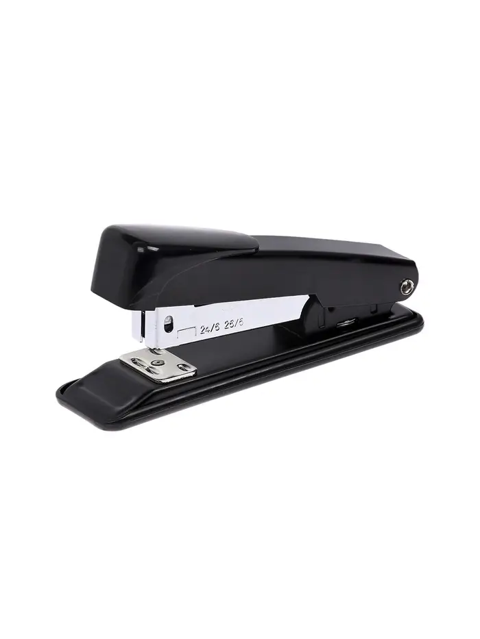 Пластиковые степлеры ломаются, заедают и быстро выходят из строя. Металлический корпус — это гарантия того, что инструмент прослужит годы, не теряя функциональности. 18 листов — оптимальный объём для большинства офисных задач: отчёты, договоры, счета, внутренние документы. Всё, что толще, обычно отправляется на сшивание или в папки. Совместимость с двумя размерами скоб — удобно: не нужно искать конкретный тип, подойдут и 24/6, и 26/6. Чёрный цвет — практичный и строгий, такой степлер не привлекает лишнего внимания и не выглядит дёшево. Это выбор для офисов, бухгалтерий и домашних кабинетов, где нужен просто надёжный инструмент, который работает без сбоев и не требует замены каждый год.
