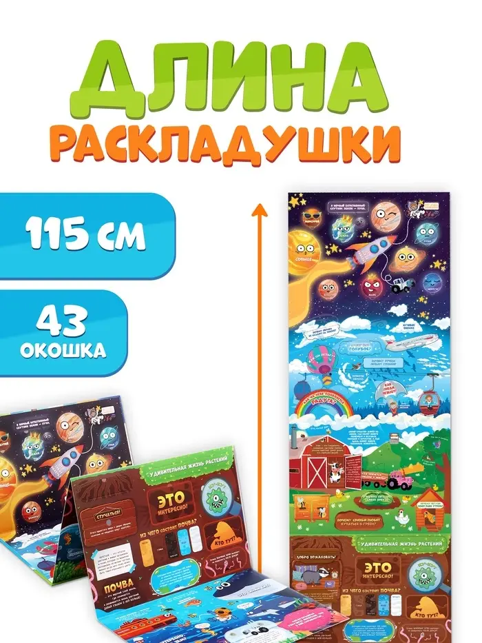- Развивает любознательность. Простые, но точные факты о космосе, природе и технологиях пробуждают интерес к науке с самого раннего возраста.