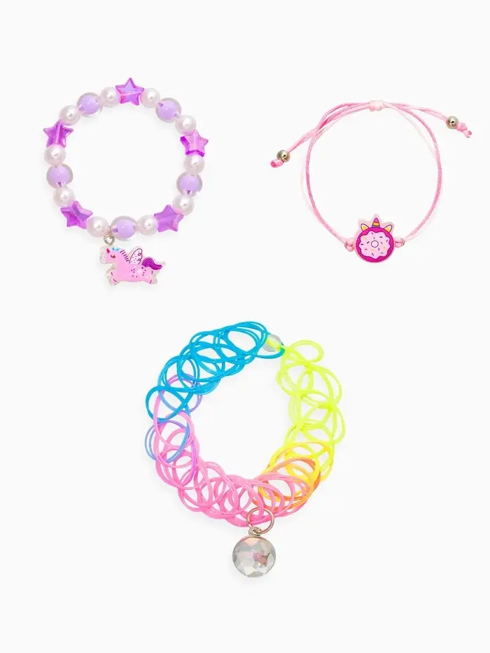 Браслет детский набор 3 шт. "Выбражулька" пончик, единорог, силиконовый, разноцветный