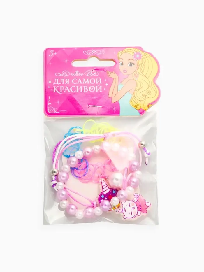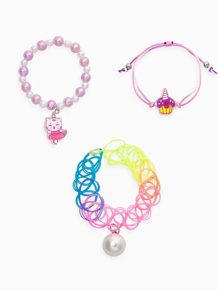 Браслет детский набор 3 шт. "Выбражулька" котик, единорог, силиконовый, разноцветный
