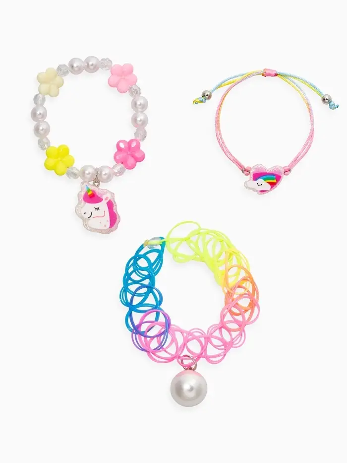 Браслет детский набор 3 шт. "Выбражулька" сердце, единорог, силиконовый, разноцветный