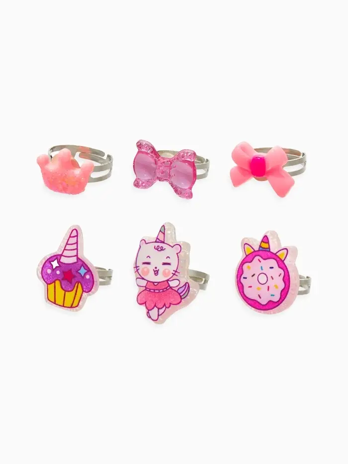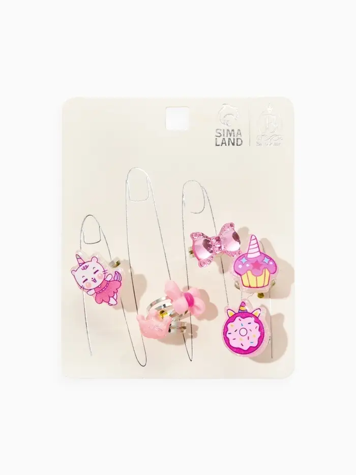 Кольца детские набор 6 шт. «Выбражулька» котик, единорог, форма МИКС, б-р, цвет фиолт-роз