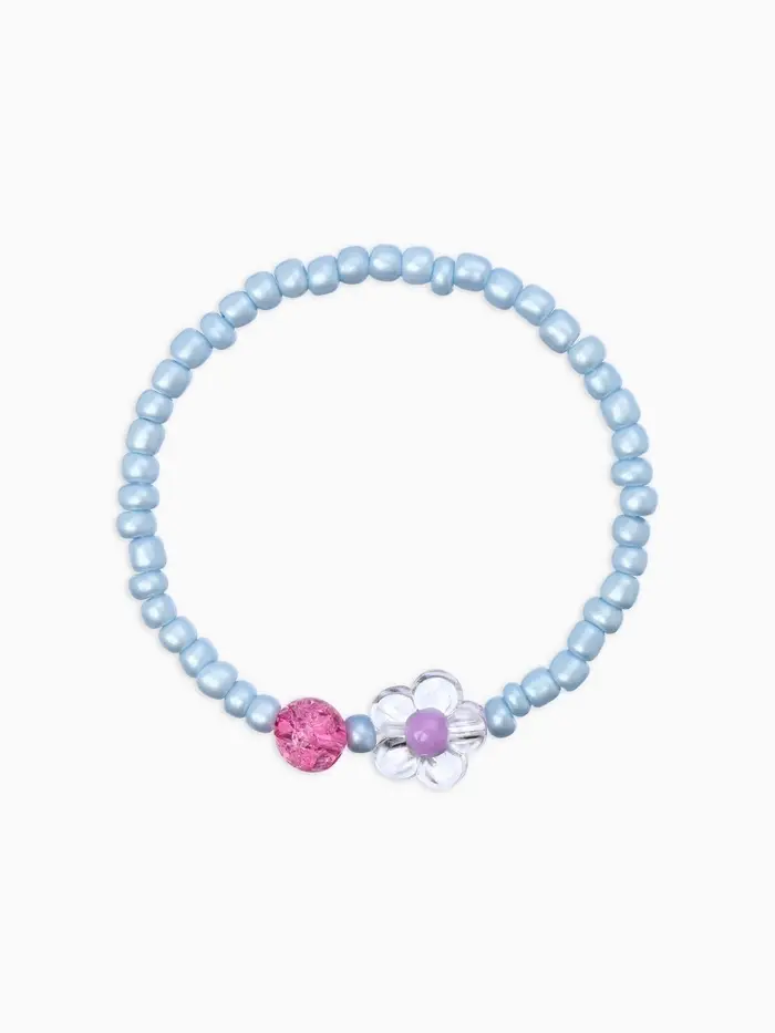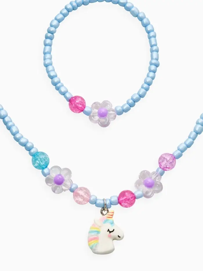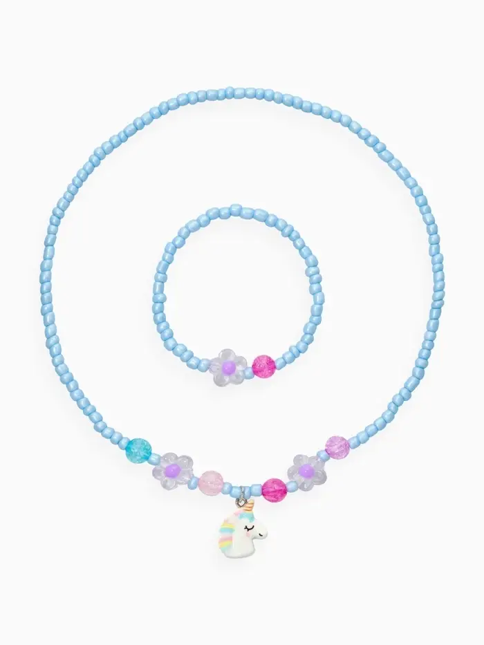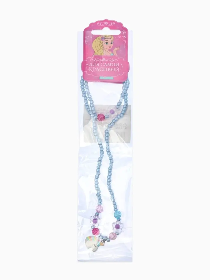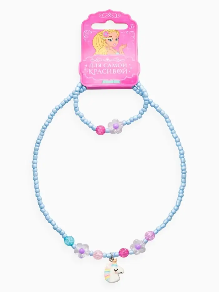 Набор детский «Выбражулька» 2 предмета: бусы, браслет, единорог, цветы, цвет голубой