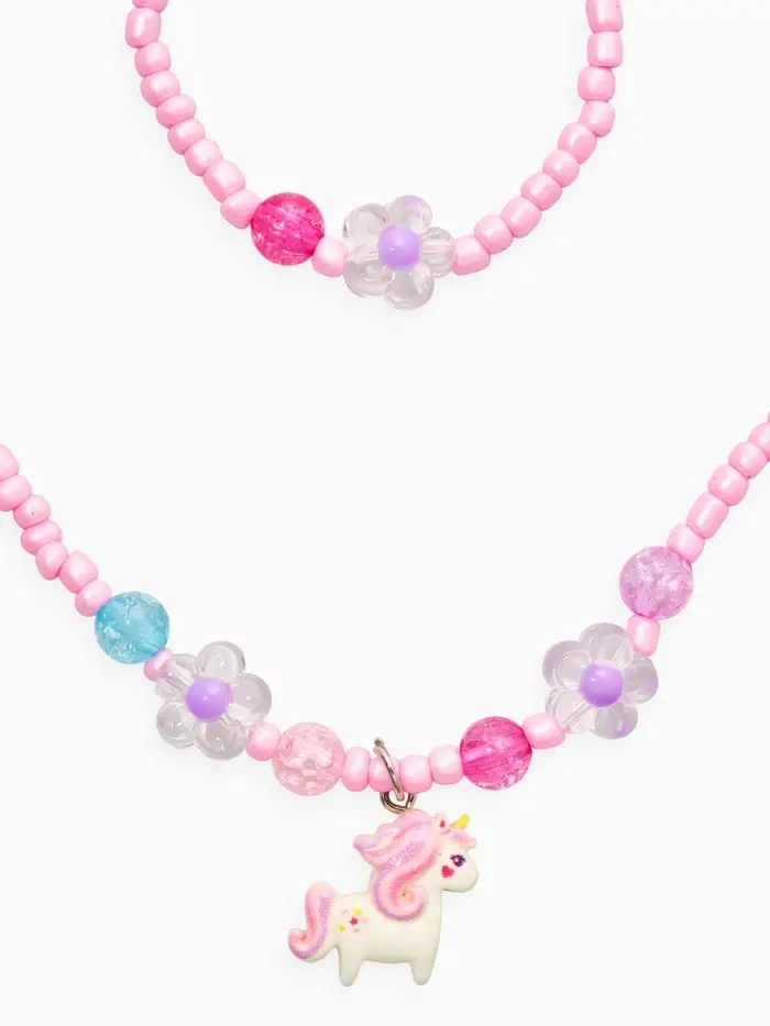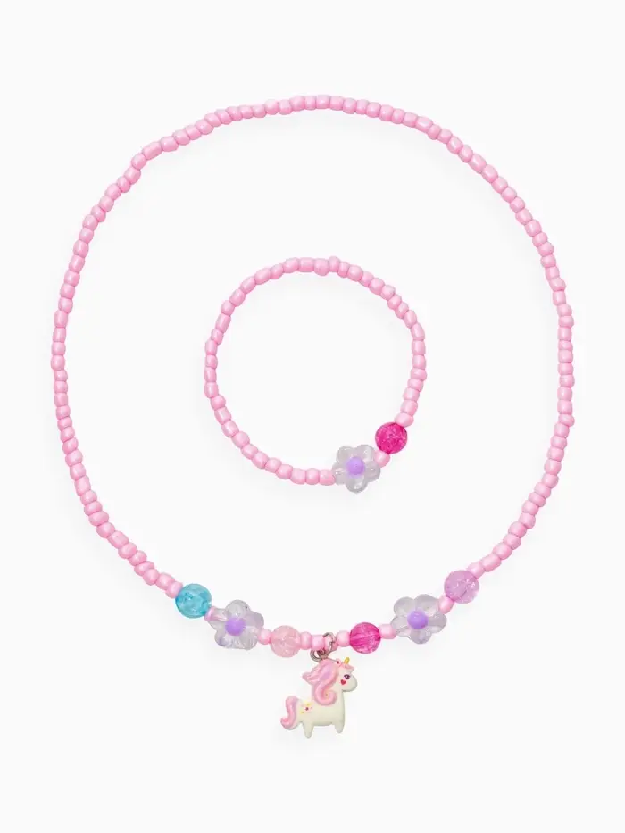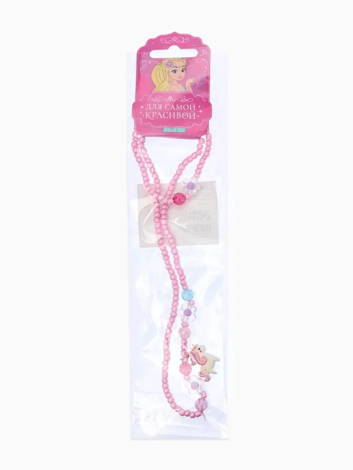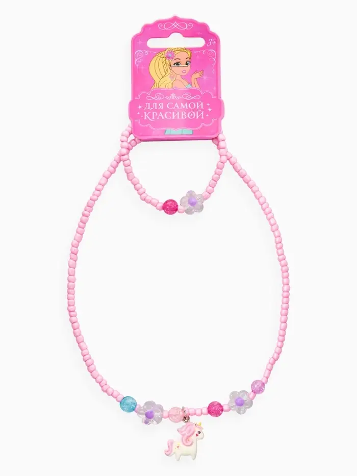 Набор детский «Выбражулька» 2 предмета: бусы, браслет,единорог, цветы, цвет розовый