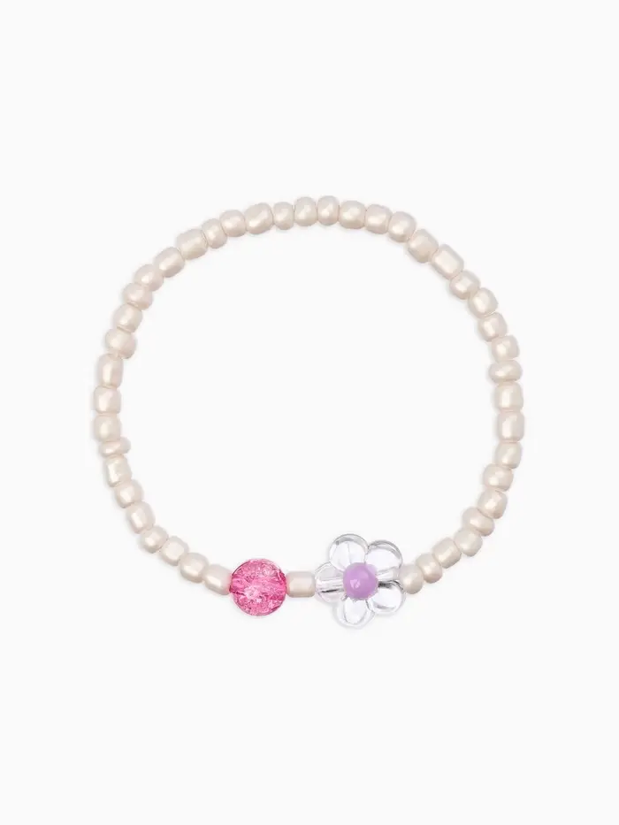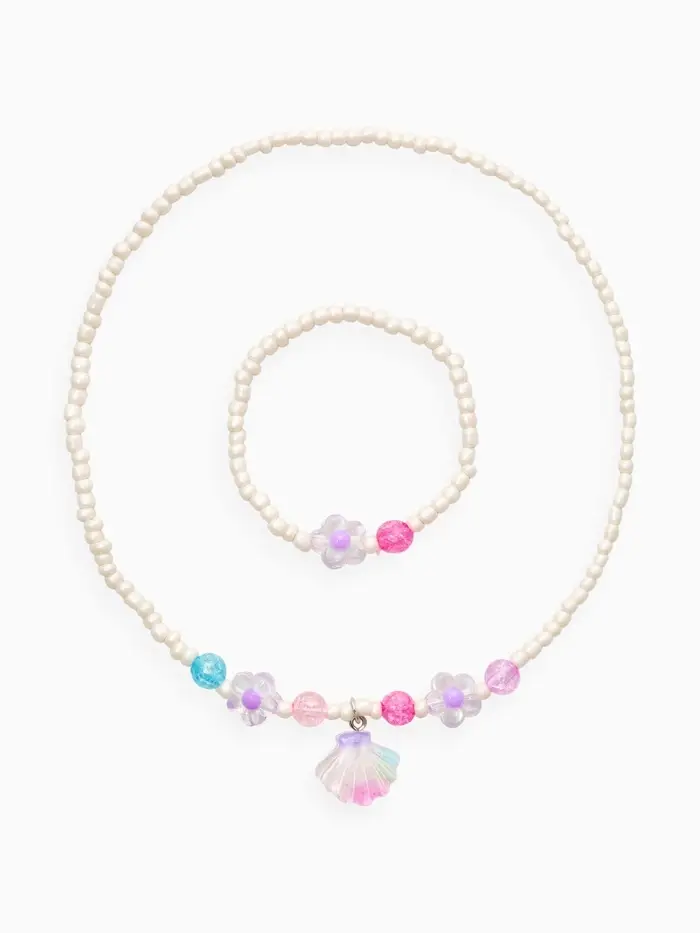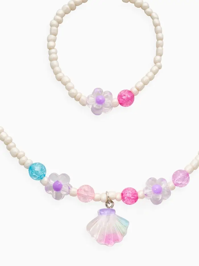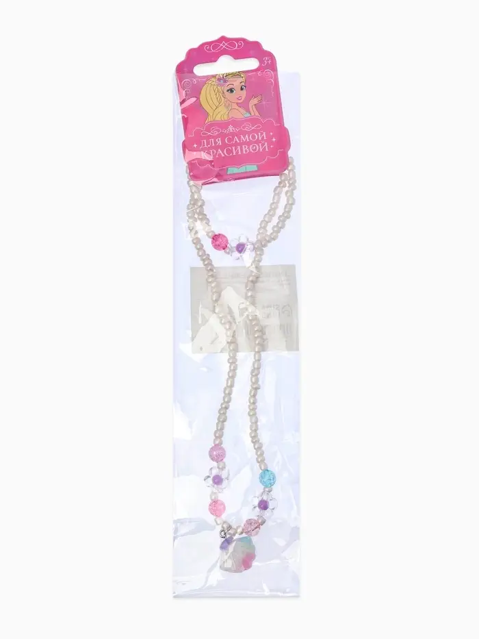 Набор детский «Выбражулька» 2 предмета: бусы, браслет, ракушка, цветы, цвет бело-розовый
