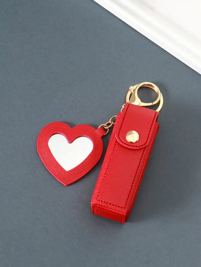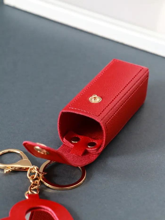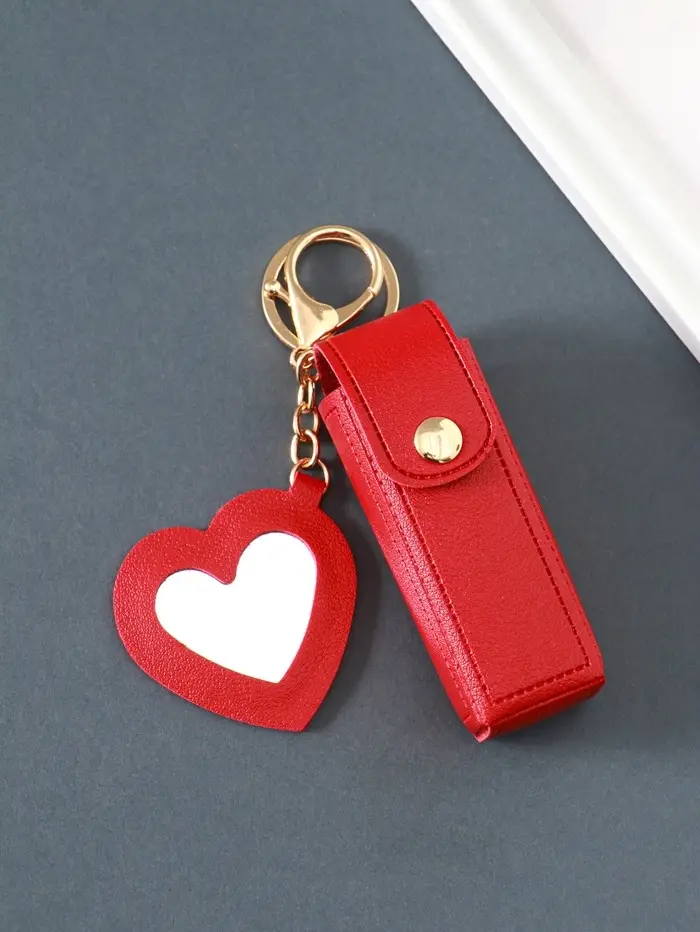 Брелок кожзам с карабином, с зеркалом "Для помады" красный 9,2х3х3,5 см