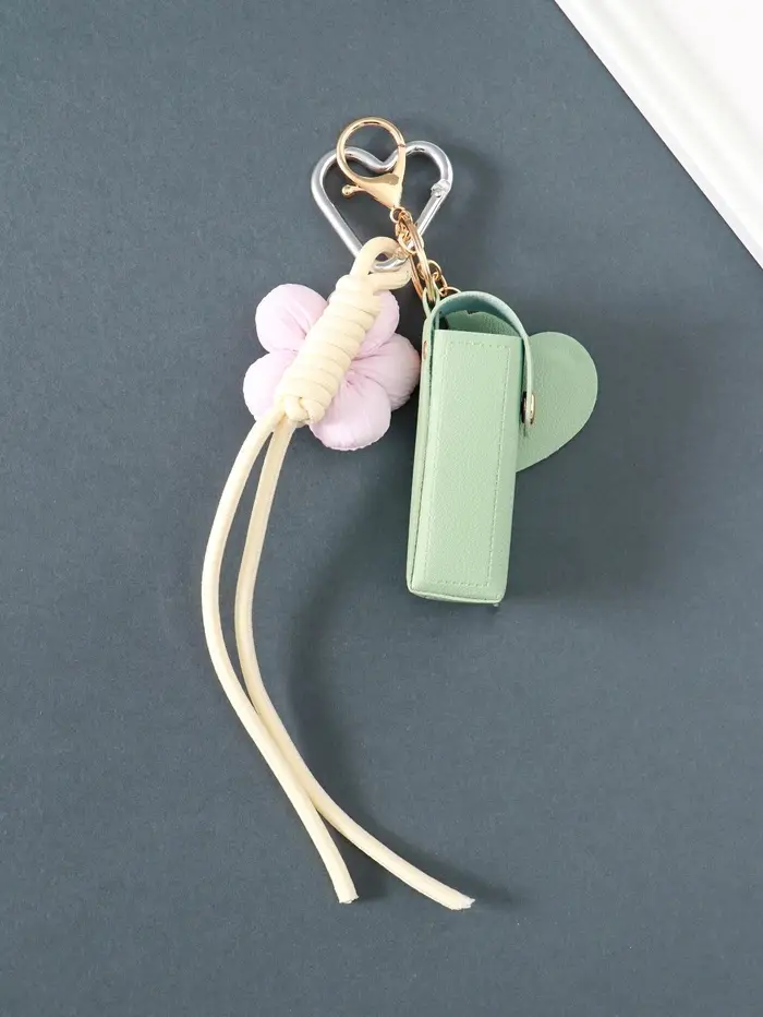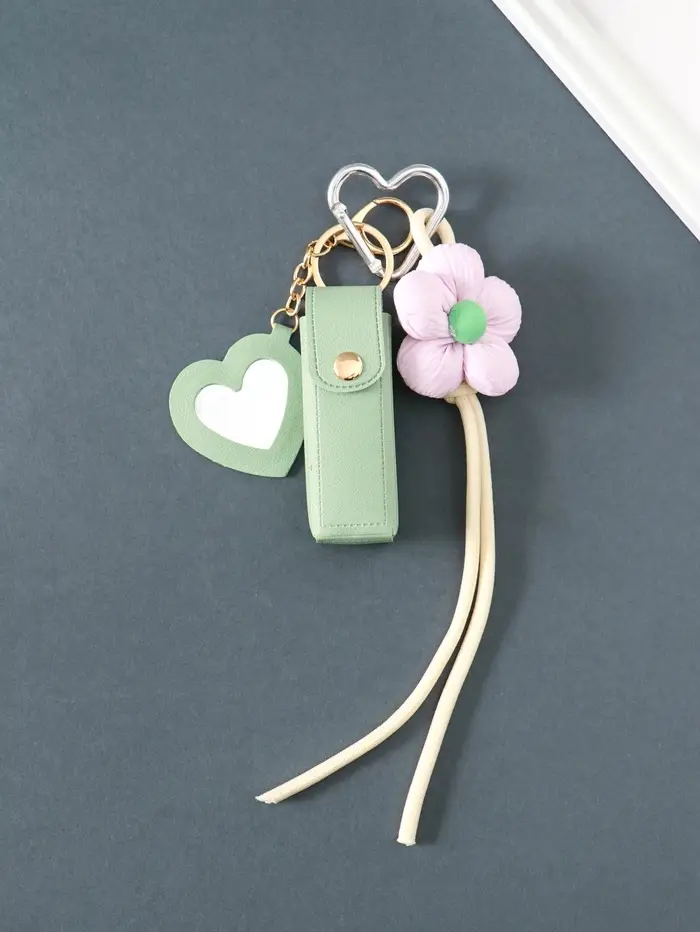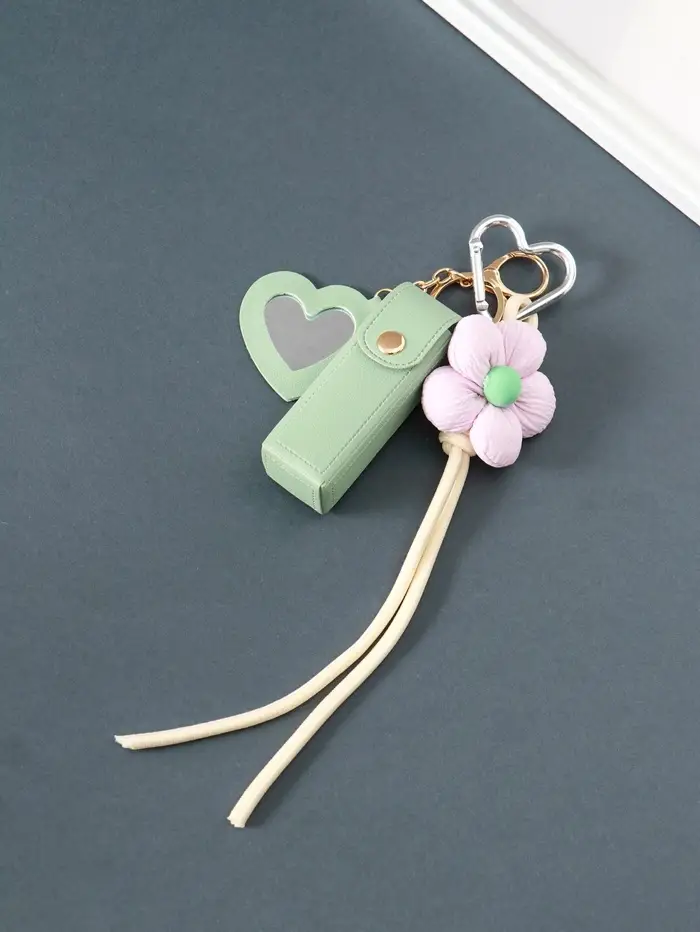 Брелок кожзам с карабином, с зеркалом "Для помады. Цветок" мятный 20х3х3,5 см
