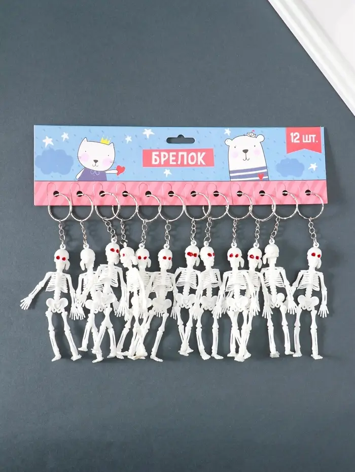 Брелок пластик "Скелет в бандане" белый 10х3,5х1 см