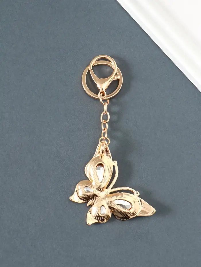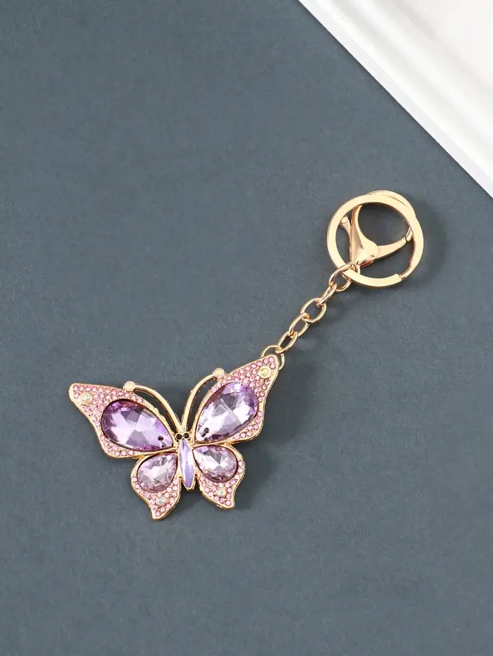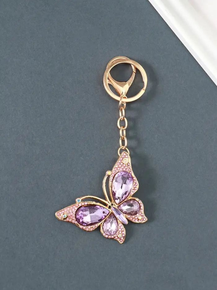 Брелок металл, стразы на карабине "Бабочка" розовый 4,7х6,4х0,8 см