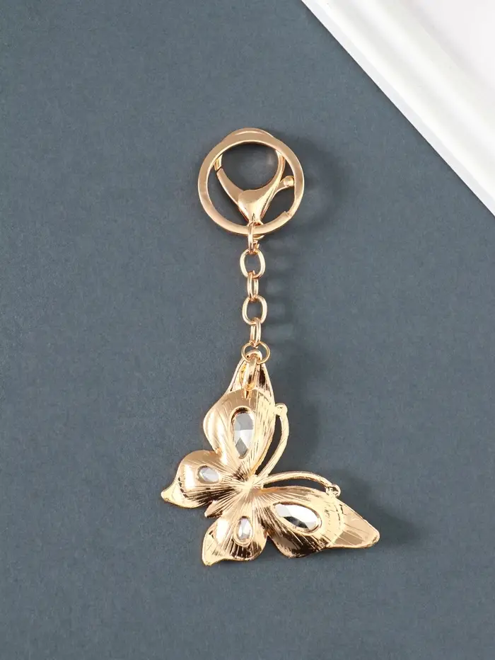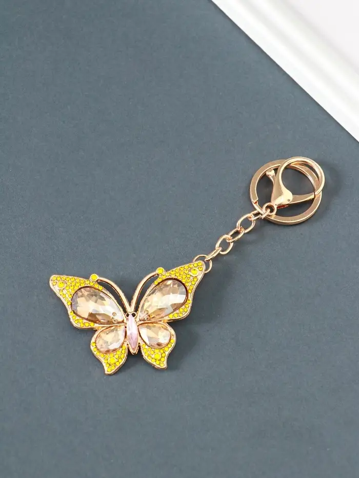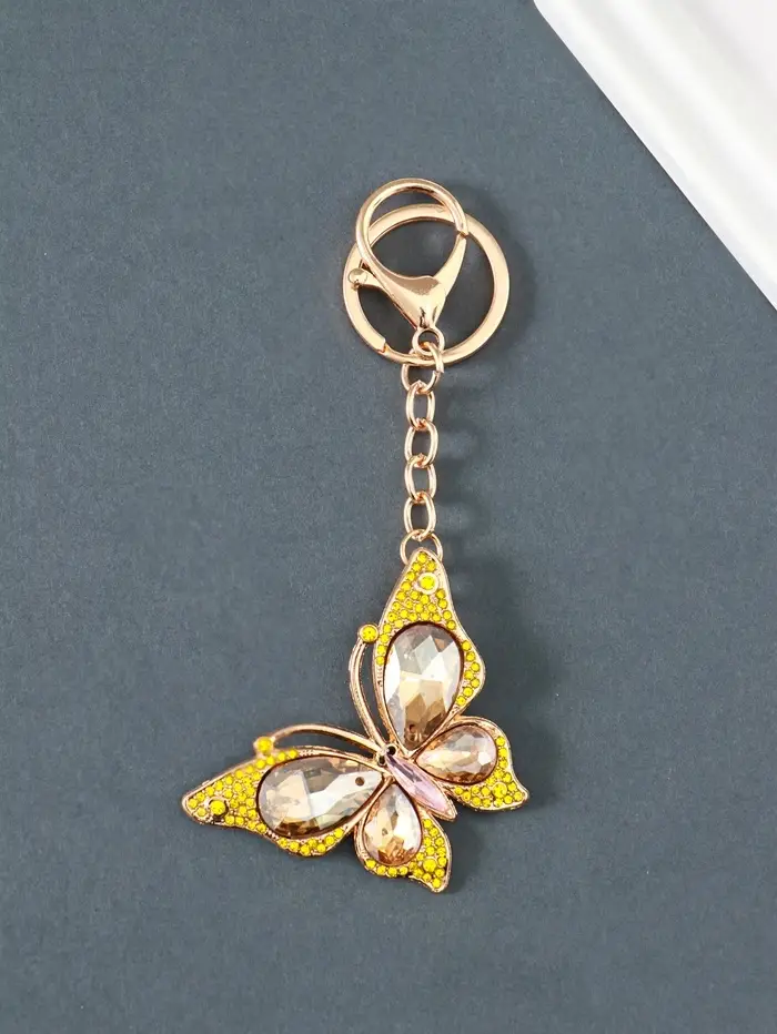 Брелок металл, стразы на карабине "Бабочка" жёлтый 4,7х6,4х0,8 см