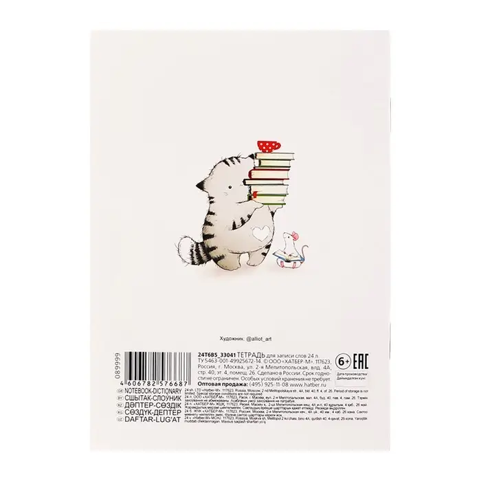 Тетрадь для записи иностранных слов А6 24 листа «Приключения кота Пирожка»