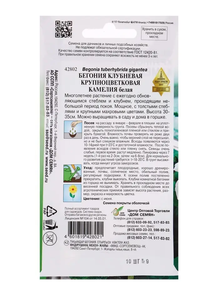 Семена цветов Бегония крупноцв.Камелия белая 10 шт