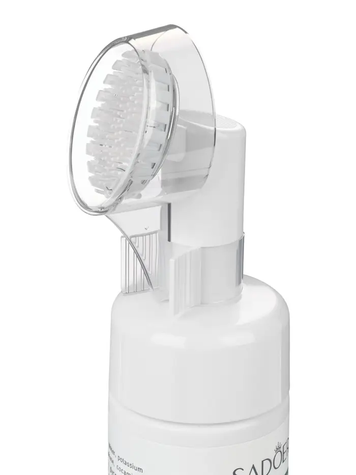Воздушная, нежная пена глубоко очищает поры, удаляя загрязнения, излишки кожного себума, остатки макияжа и токсины, накопившиеся в течение дня. Встроенная щетка с тонкими, эластичными щетинками усиливает очищающий эффект, обеспечивая мягкий массаж кожи. Такой массаж способствует улучшению микроциркуляции, выравниванию тона лица и делает кожу более сияющей и ухоженной.