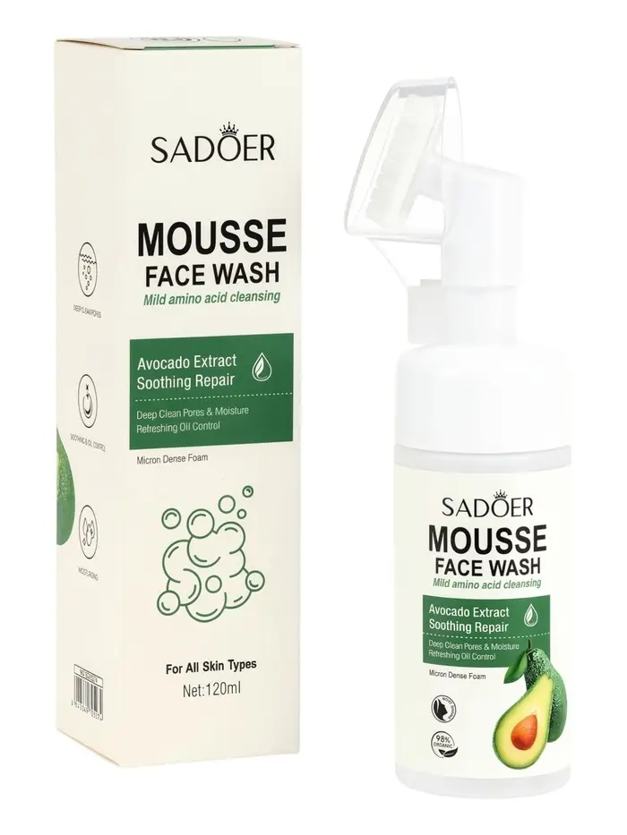 Пенка для умывания с щеткой, с щеточкой с экстрактом авокадо, 120 мл