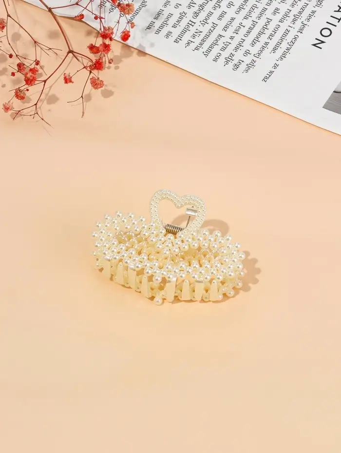 Крабик для волос «Лиллиан», сердце, 8 см, белый