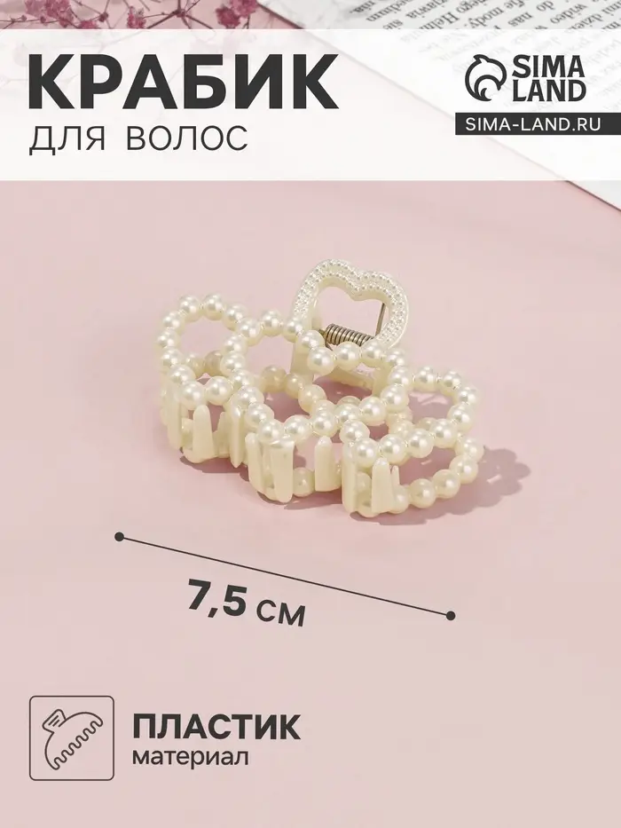 Собери волосы в стильный акцент! Зажим для волос «Сердце», 7,5 см, белый — это классический крабик для быстрой и аккуратной укладки. Его лаконичный дизайн в форме сердца подчеркивает романтичный образ, а надежная фиксация удерживает пряди в течение всего дня.
