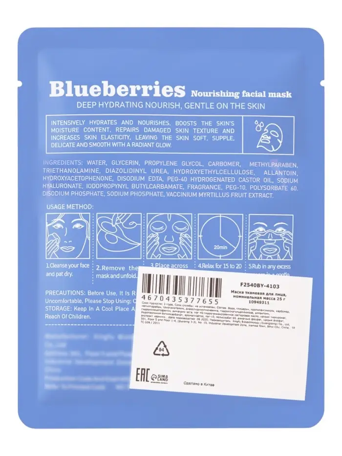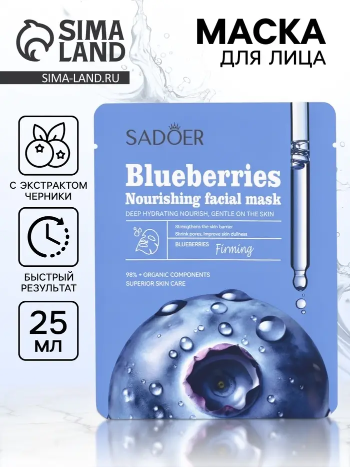 Маска тканевая увлажняющая для лица «Черника», 25 г