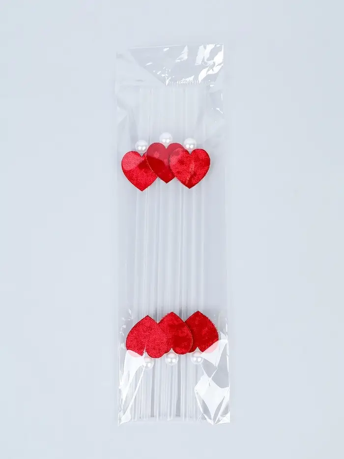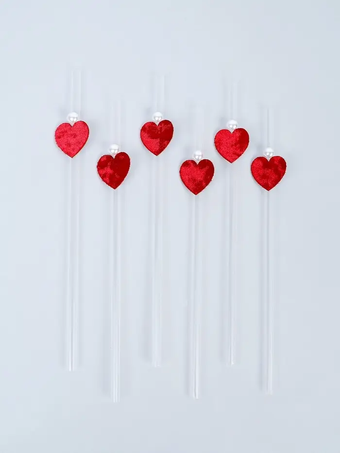 Трубочки для коктейля "сердечки, бусинки" (набор 6 шт)