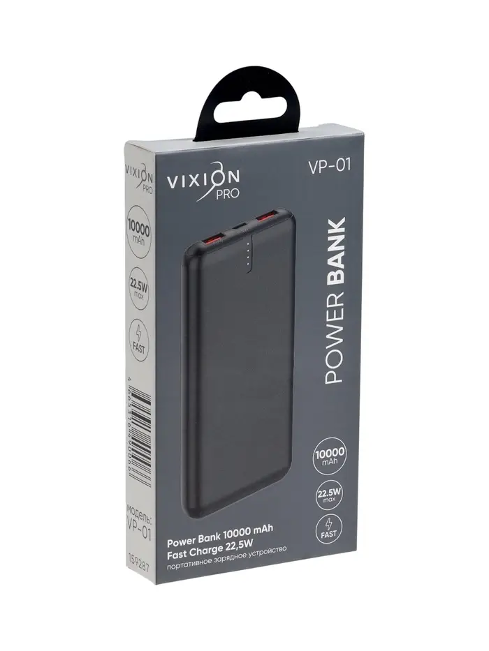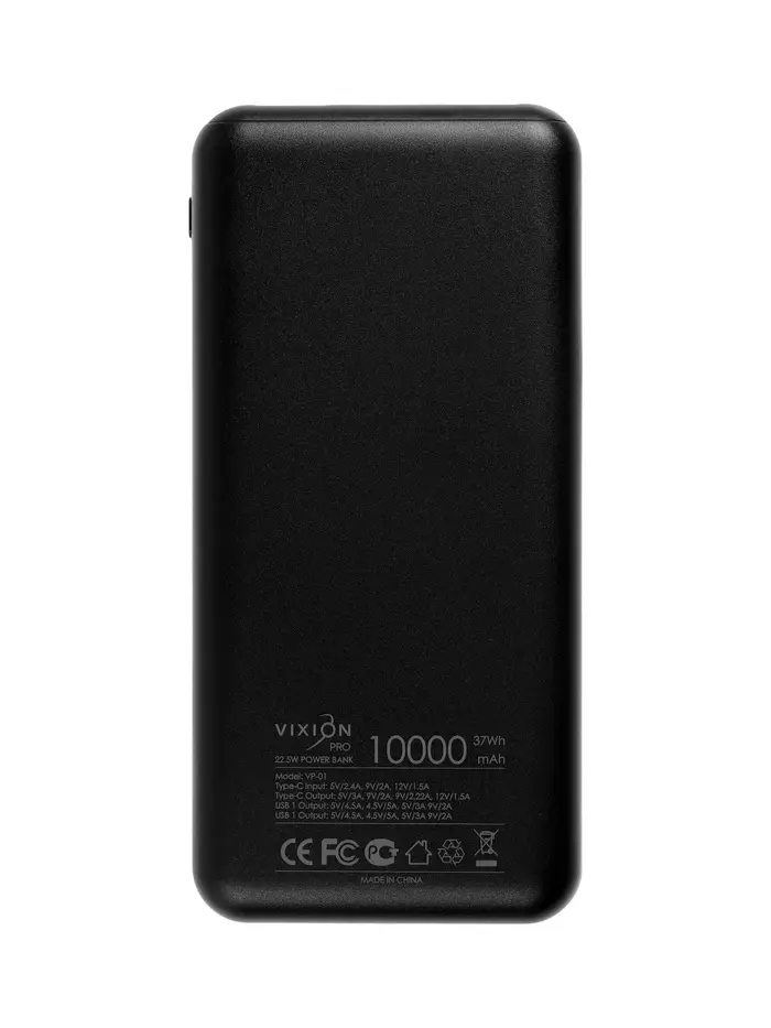 Внешний аккумулятор VIXION PRO VP-01, 10000мАч, USB+Type-C, быстрая зарядка, черный
