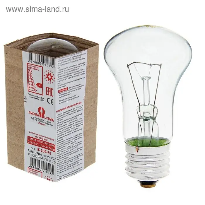 Лампа накаливания «Лисма», Б, Е27, 75 Вт, 230 В
