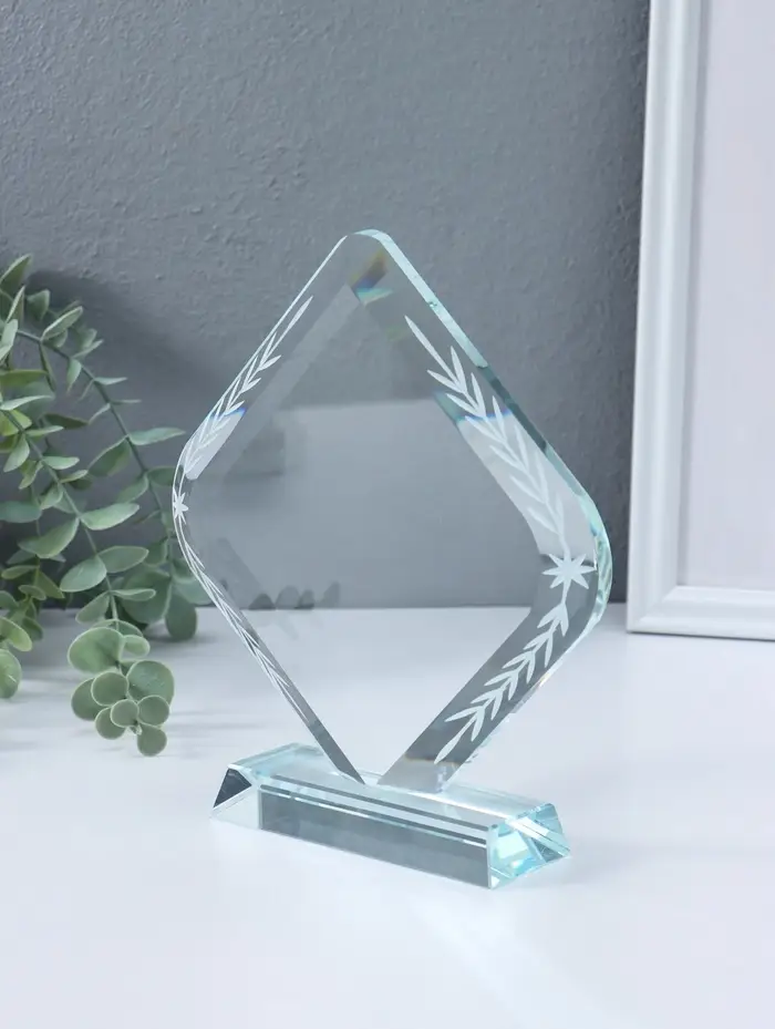 Стела наградная стекло "Ромб" площадка 17,5х18,3 см 3,5х17,5х20 см
