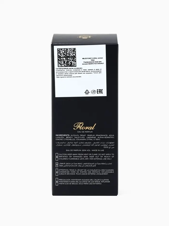 Milestone FLORAL — это яркий, свежий и одновременно утончённый женский аромат, относящийся к семейству фруктовых и цветочных, с фруктово-цветочными и цитрусовыми акцентами. Он создан для женщин, которые ценят элегантность, лёгкость и свежесть, при этом оставаясь женственными и привлекательными. Этот аромат словно маленький сад в солнечный день — сочный, цветущий и чарующе притягательный.