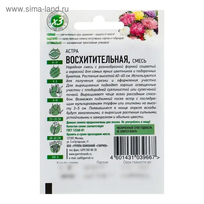 Семена цветов Астра "Восхитительная", ц/п, смесь, О, 0,3 г серия ХИТ х3