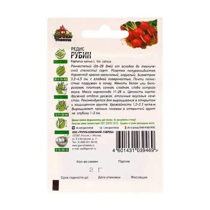 Семена Редис "Рубин", ц/п, 2 г серия ХИТ х3