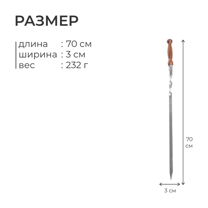 Шампур с деревянной лакированной ручкой, 64×2.5 см