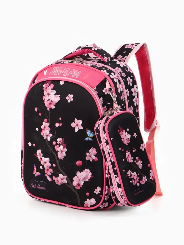 Рюкзак школ. с Эргон. спин. 30*12*36 см, 2отд, 2н/карм+Пенал, девочка, Цветы рерн/роз