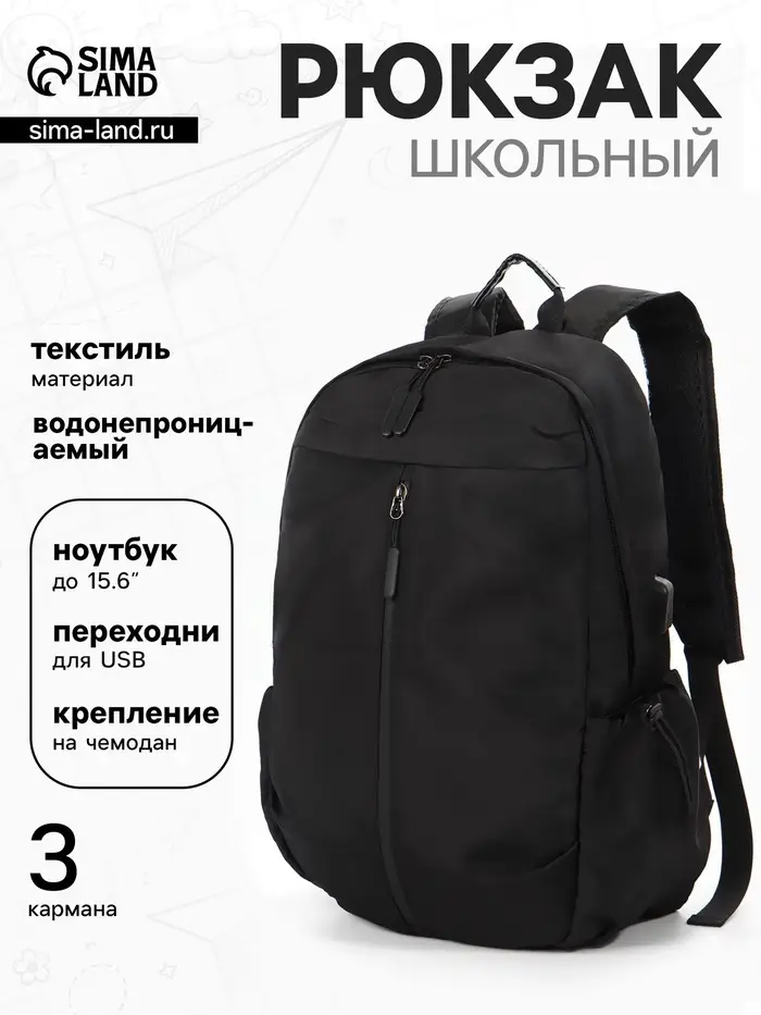 - Универсальный черный цвет и отсутствие рисунков делают рюкзак уместным в любой ситуации.