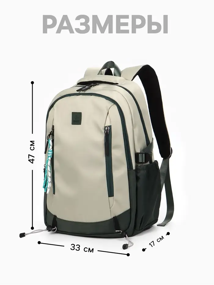 - Универсальный дизайн и комбинированные материалы делают рюкзак практичным выбором для каждого школьного дня.
