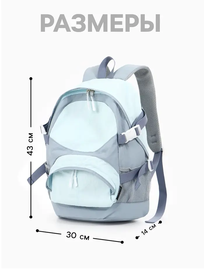 Рюкзак, 1 отделение, 4 кармана, 30×14×43 см, голубой