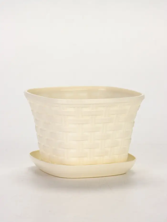 Кашпо квадратное «Ротанг» 1,2л с поддоном, цвет слоновая кость