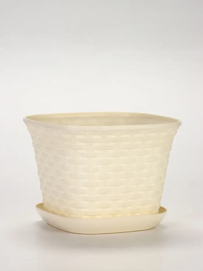 Кашпо квадратное «Ротанг» 4,6л с поддоном, цвет слоновая кость