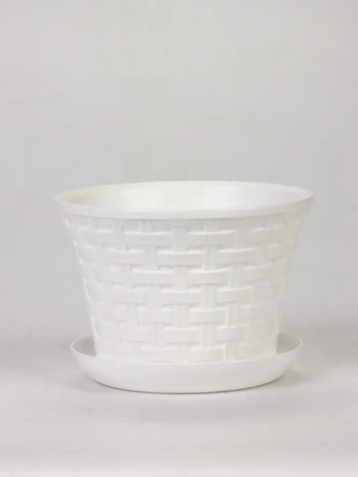 Кашпо круглое «Ротанг» 1,1л с поддоном, цвет белый