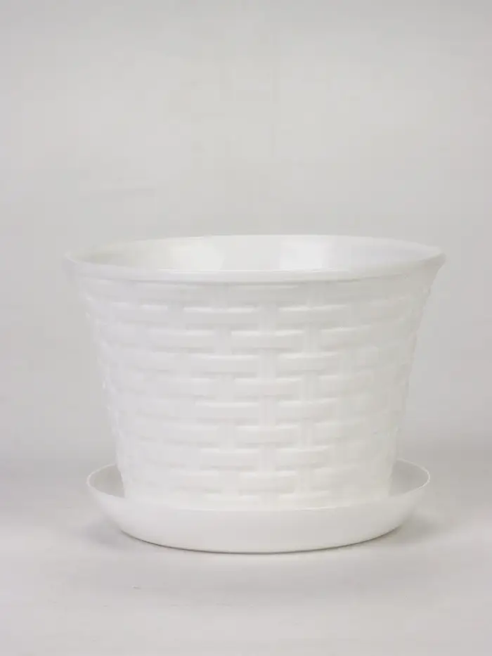Кашпо круглое «Ротанг» 2,1л с поддоном, цвет белый