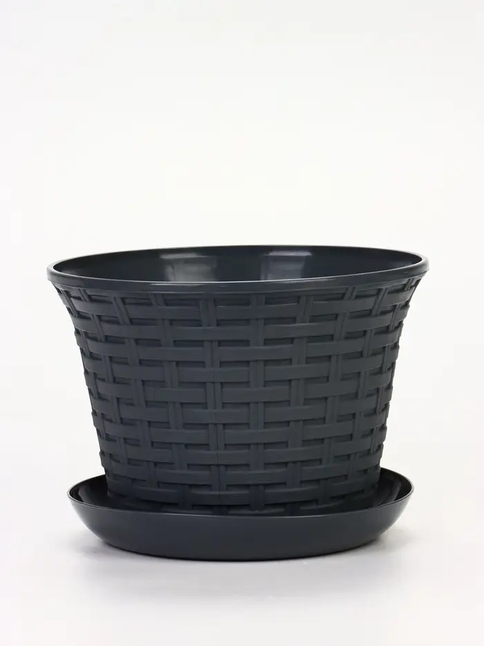 Кашпо круглое «Ротанг» 3л с поддоном, цвет серый