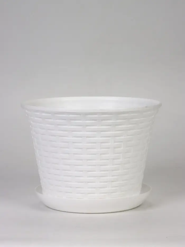 Кашпо круглое «Ротанг» 8л с поддоном, цвет белый