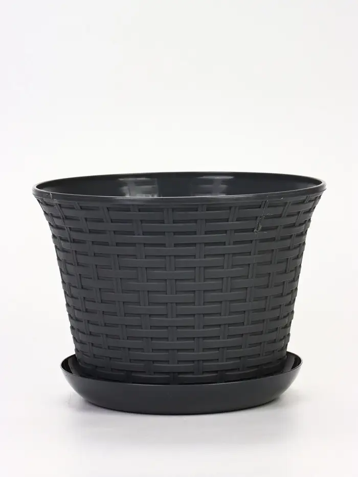 Кашпо круглое «Ротанг» 8л с поддоном, цвет серый