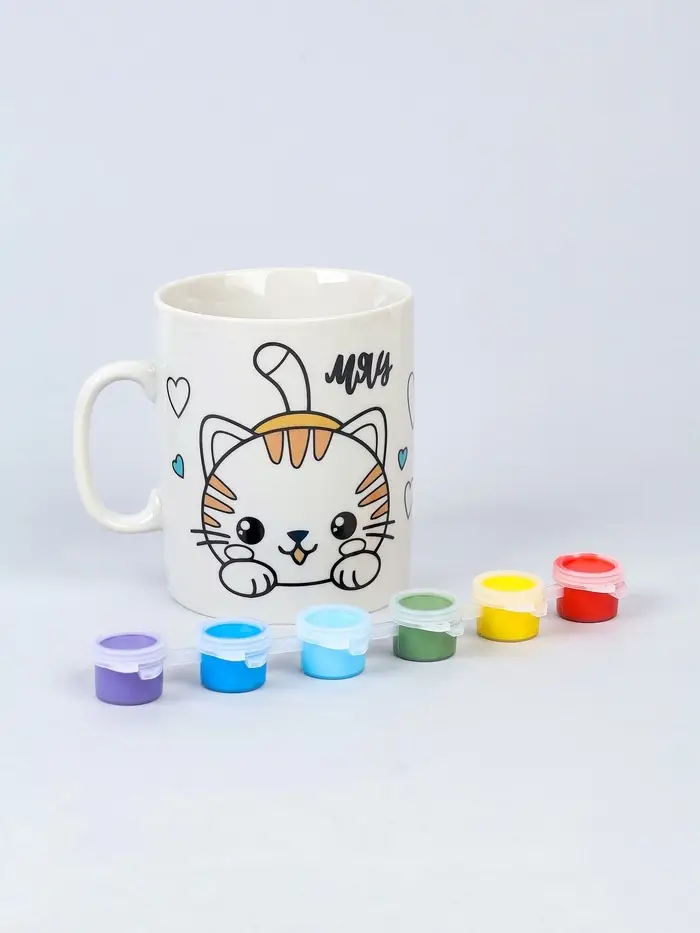 Кружка керамика под роспись акрилом "Кот" (краска в наборе)