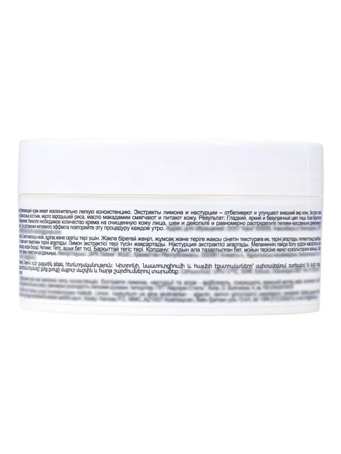 Активные растительные экстракты и питательные компоненты способствуют постепенному и деликатному отбеливанию кожи, помогают сделать цвет лица более ровным и свежим. Крем снижает выраженность пигментных пятен, предупреждает появление новых и поддерживает здоровый внешний вид кожи.