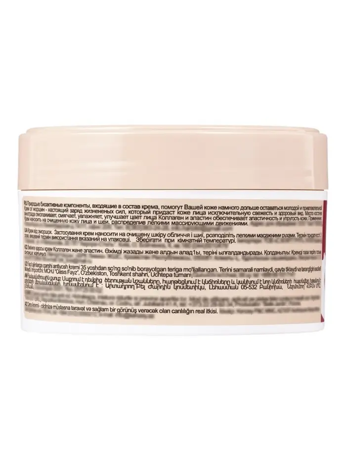 Регулярное применение крема придаёт коже упругость, гладкость и заметное омоложение, делая лицо более свежим и молодым.