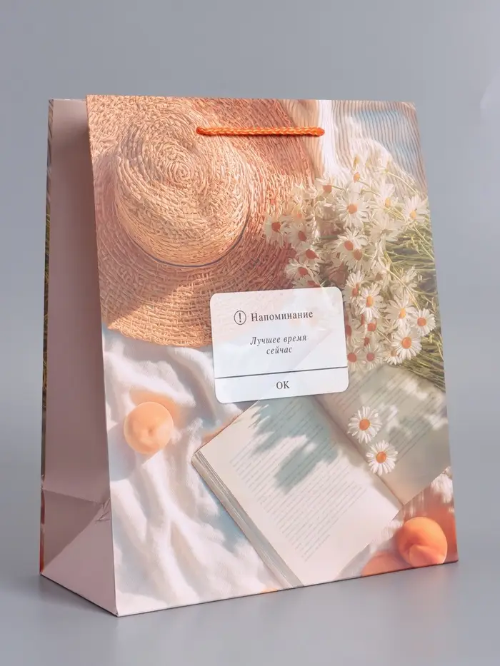 Пакет подарочный "Лучшее время сейчас" ламинированный 26 х 12 х 32 см