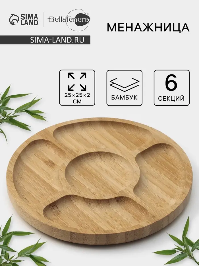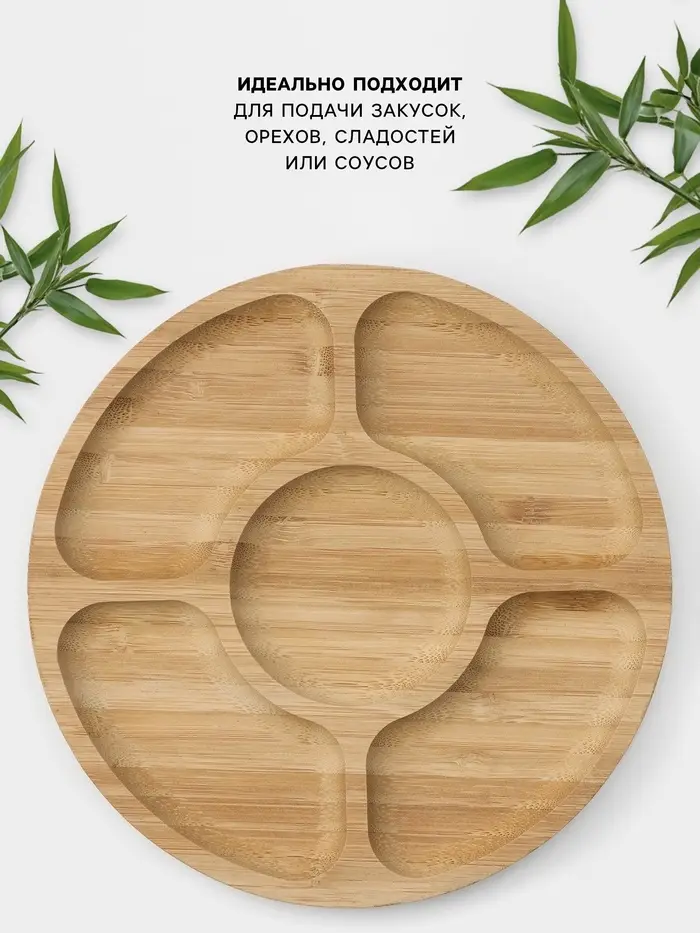 Менажница BellaTenero, d=25 см, 5 секций, бамбук, бежевая