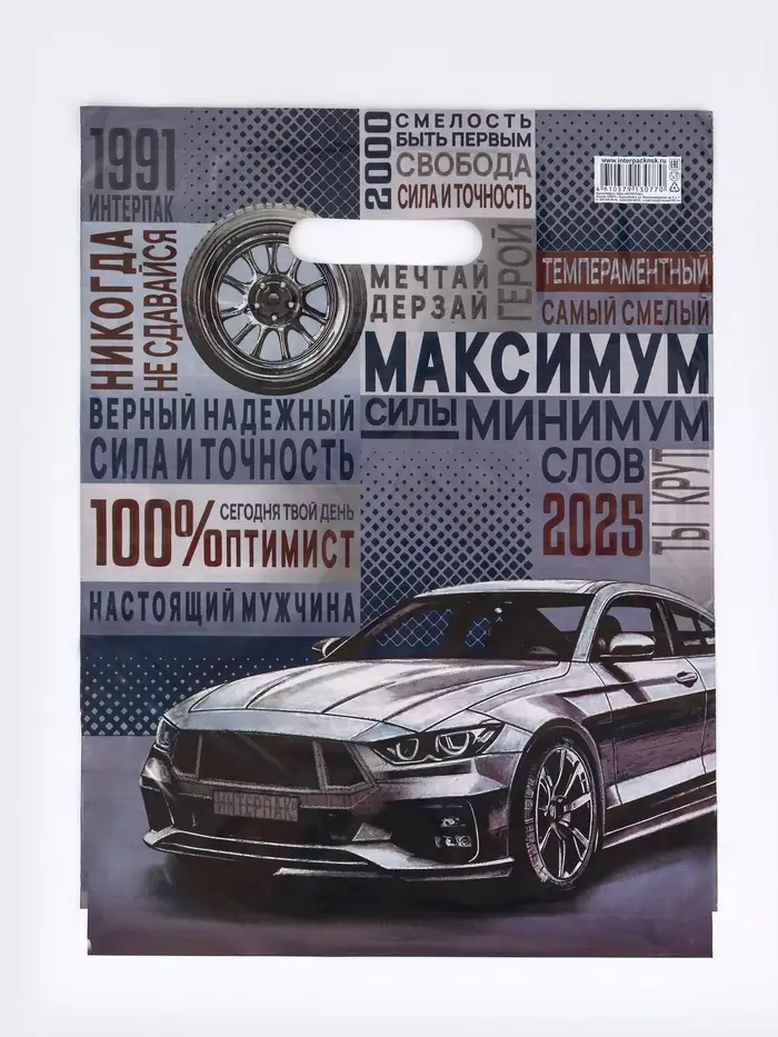 Современный подход к мужским подаркам: Этот пакет выбирают для упаковки подарков в магазинах электроники, автоаксессуаров, спортивных товаров и книжных магазинах. Техническая тематика appeals к разным возрастам — от мальчиков-подростков до взрослых мужчин. Упаковка создает настроение уверенности и стиля, которое соответствует характеру мужских презентов.