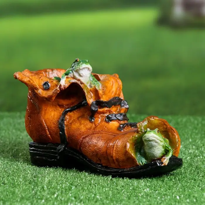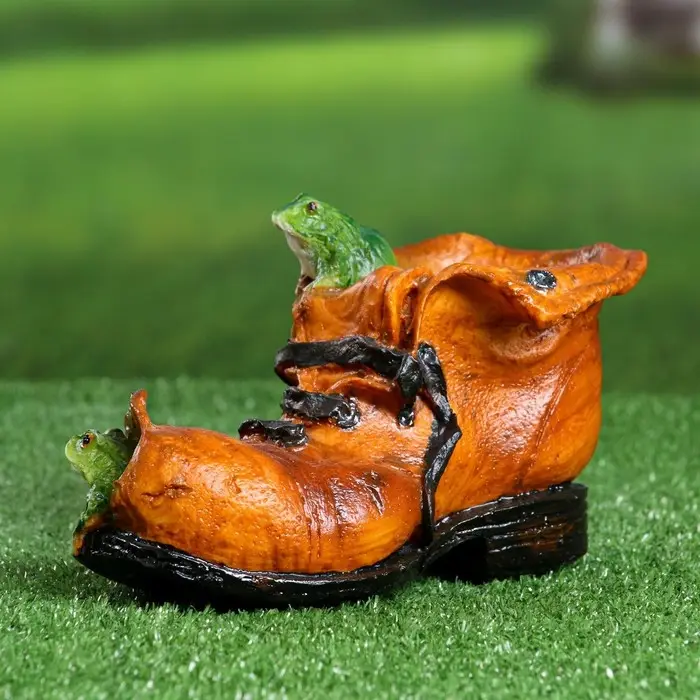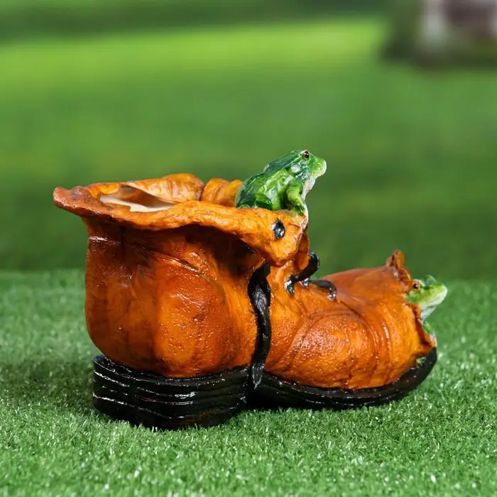 Фигурное кашпо "Ботинок с лягушками" коричневое, 24х14х14см