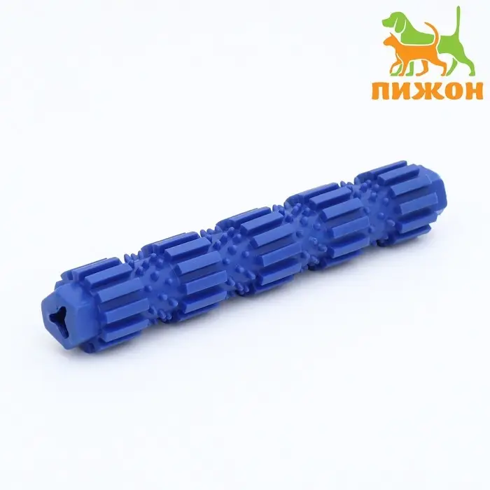 Игрушка жевательная для собак "Палка с шипами", TPR, 18 см, синяя