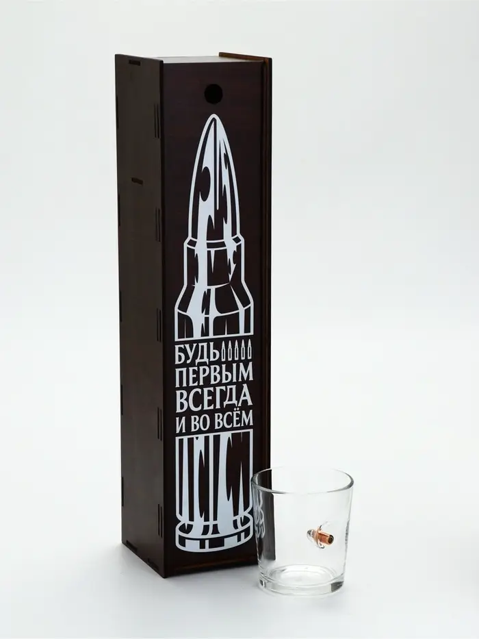 Стакан для виски "Непробиваемый" с пулей, в коробке с местом под бутылку, 250 мл