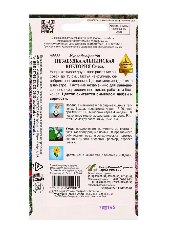 Набор семян Незабудка многолетняя «Альпийская смесь», 70 семян